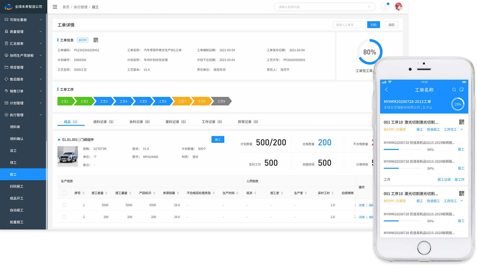 消除手工記錄的傳統生產管理模式,訂單、計劃、生產、質檢、庫存、設備等數據上云,打造智能工廠。